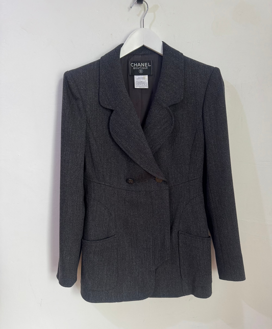 Chanel Grey Vintage 100% Wool Blazer - Size 38