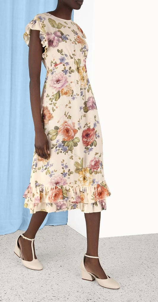 Zimmermann Ruffled Floral Midi Dress - Size 0