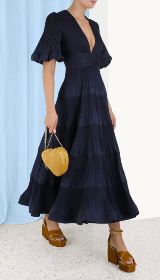 Zimmermann Navy Pleated Midi Dress - Size 1