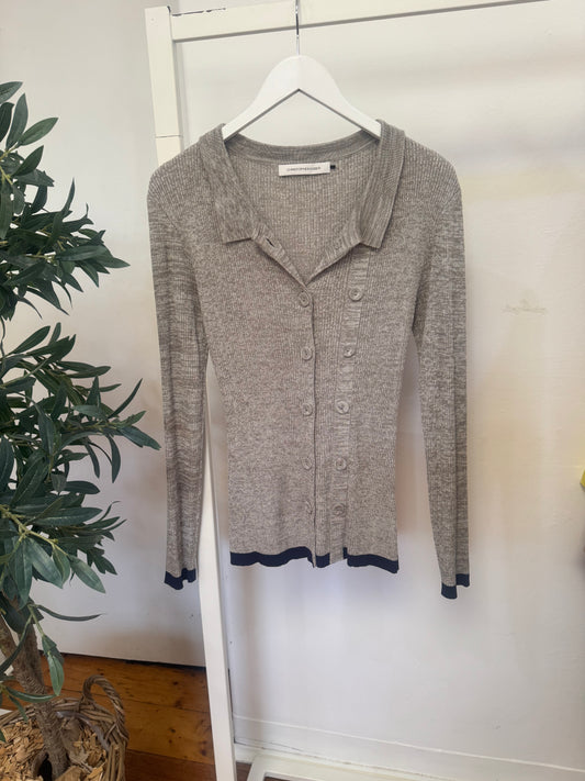 Christopher Esber Marle Grey Cardigan with Navy Trim - Size S