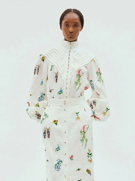 Alemais Atticus Motif Embroidered Linen Shirt - Size 8