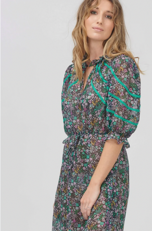 LeStripe Garden Floral Silk/Cotton Dress with Slip - Size S