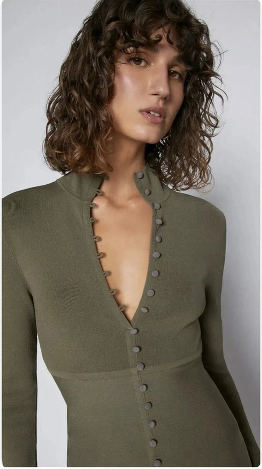 Scanlan & Theodore - Olive Crepe Knit Button Polo Dress - Size S