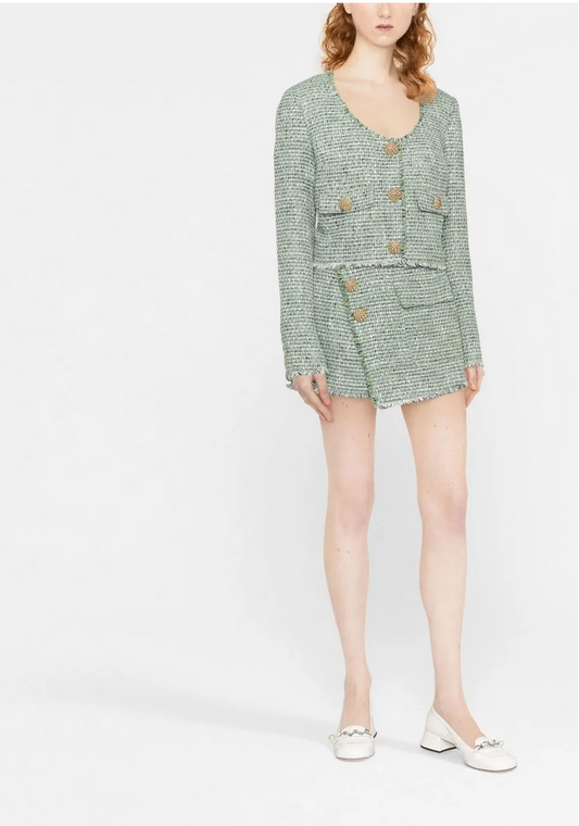 Self Portrait Green Tweed Scoop Neck Jacket - Size 12