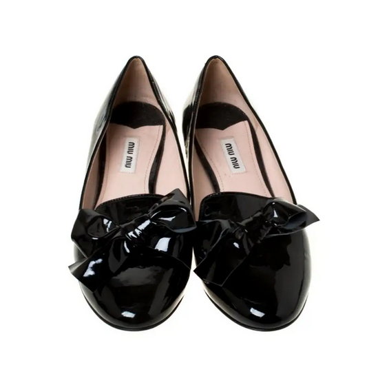 Miu Miu miu Black Patent Leather Studded Bow Ballet Flats - Size 38.5