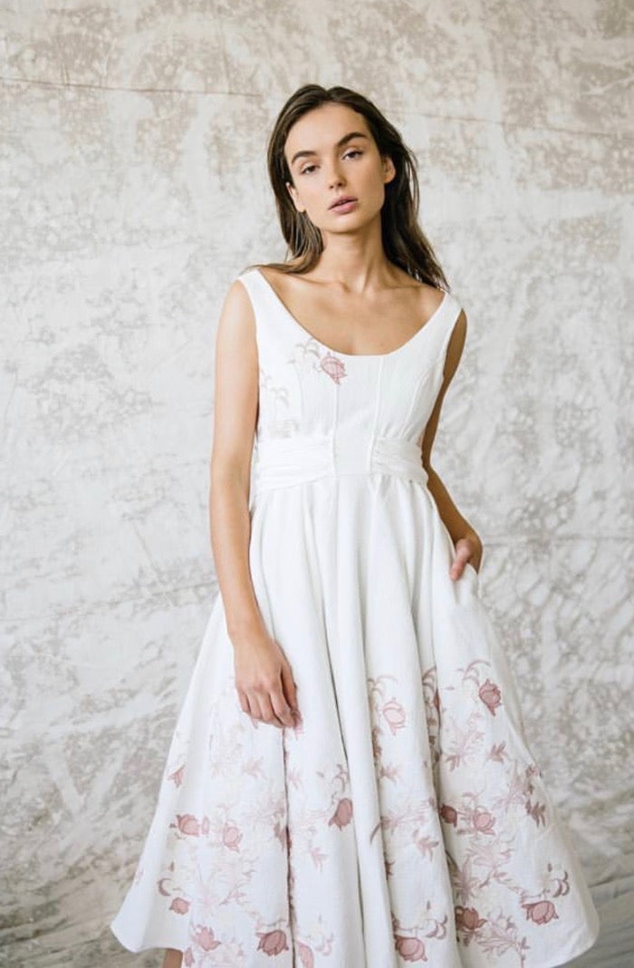 Floral White & Pink Midi Dress