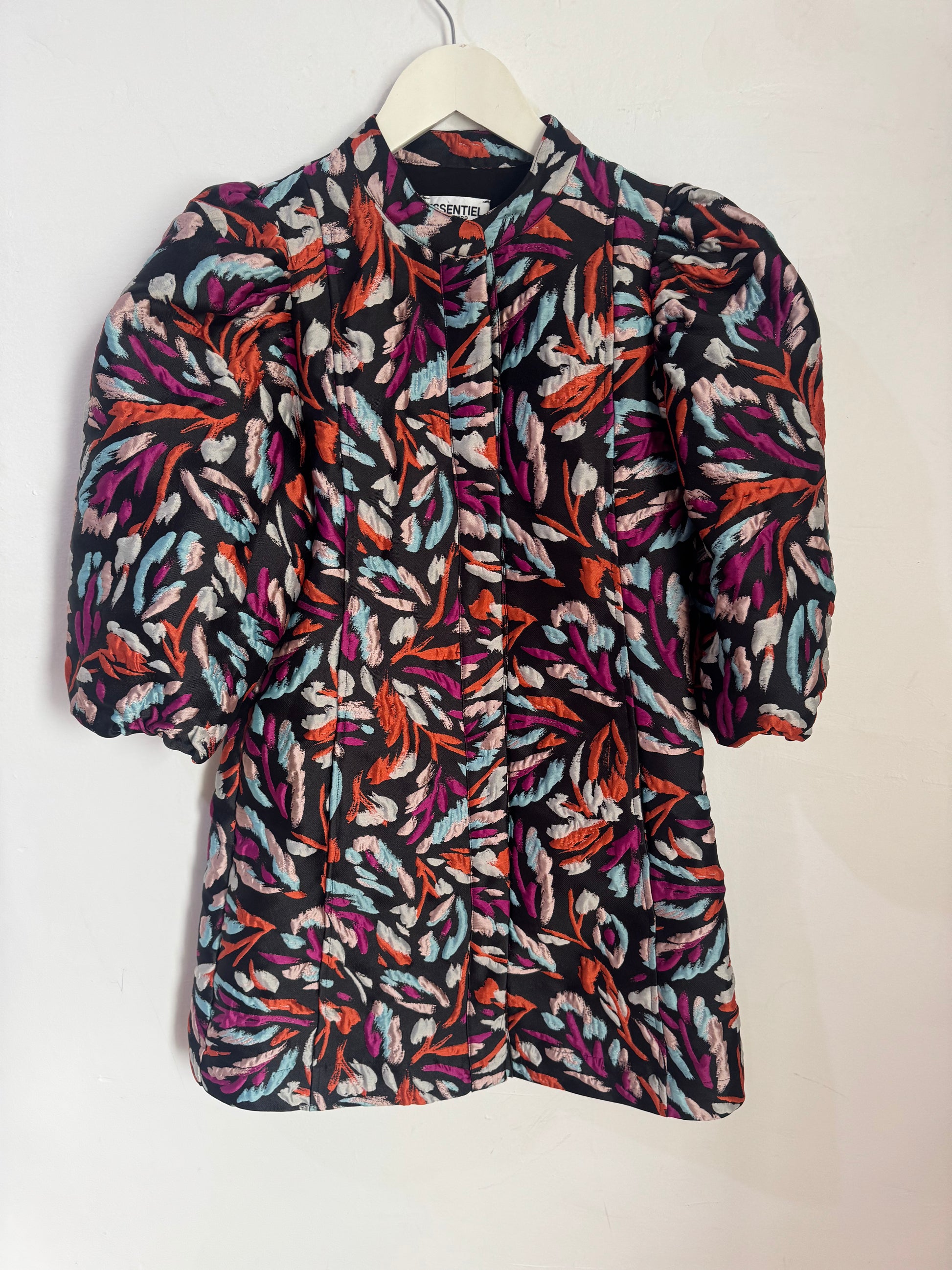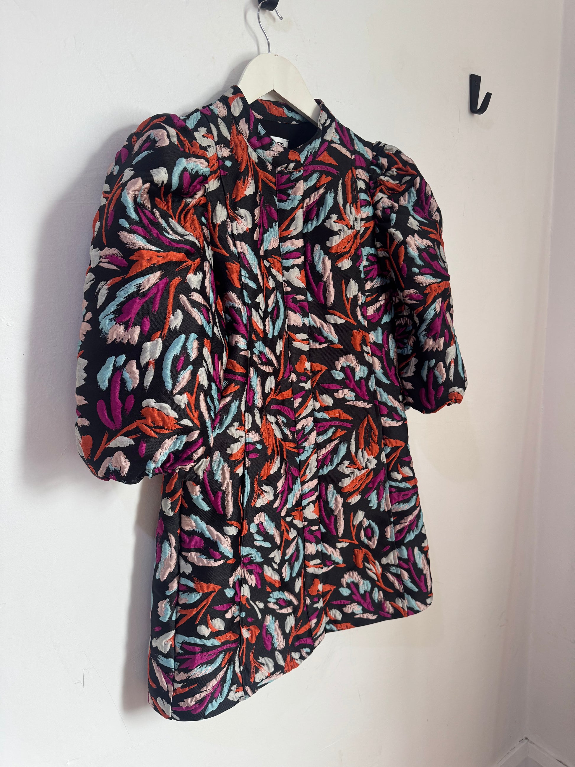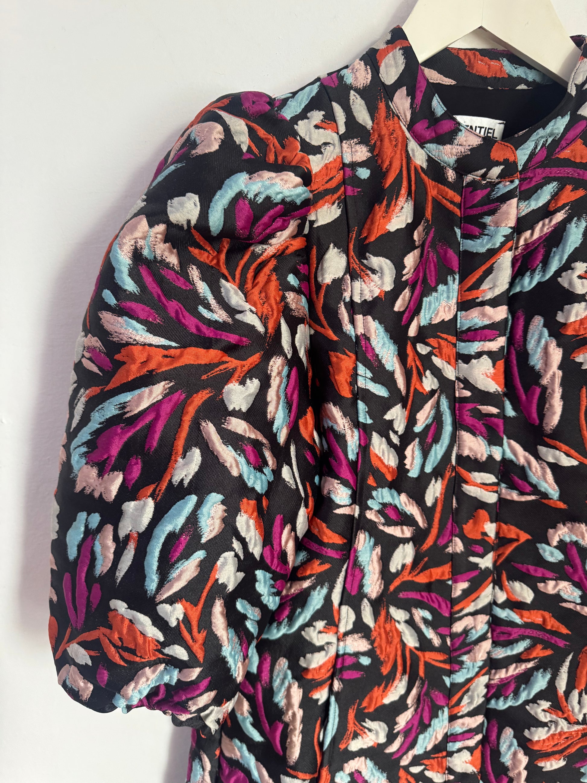 The Essentiel Antwerp Cure Puff Sleeve Mini Dress is a gorgeous mini dress featuring three-quarter puff sleeves and princess piping to accentuate the figure in a printed jacquard. Featuring a high crew neckline, side slip pockets and just above the knee length.
