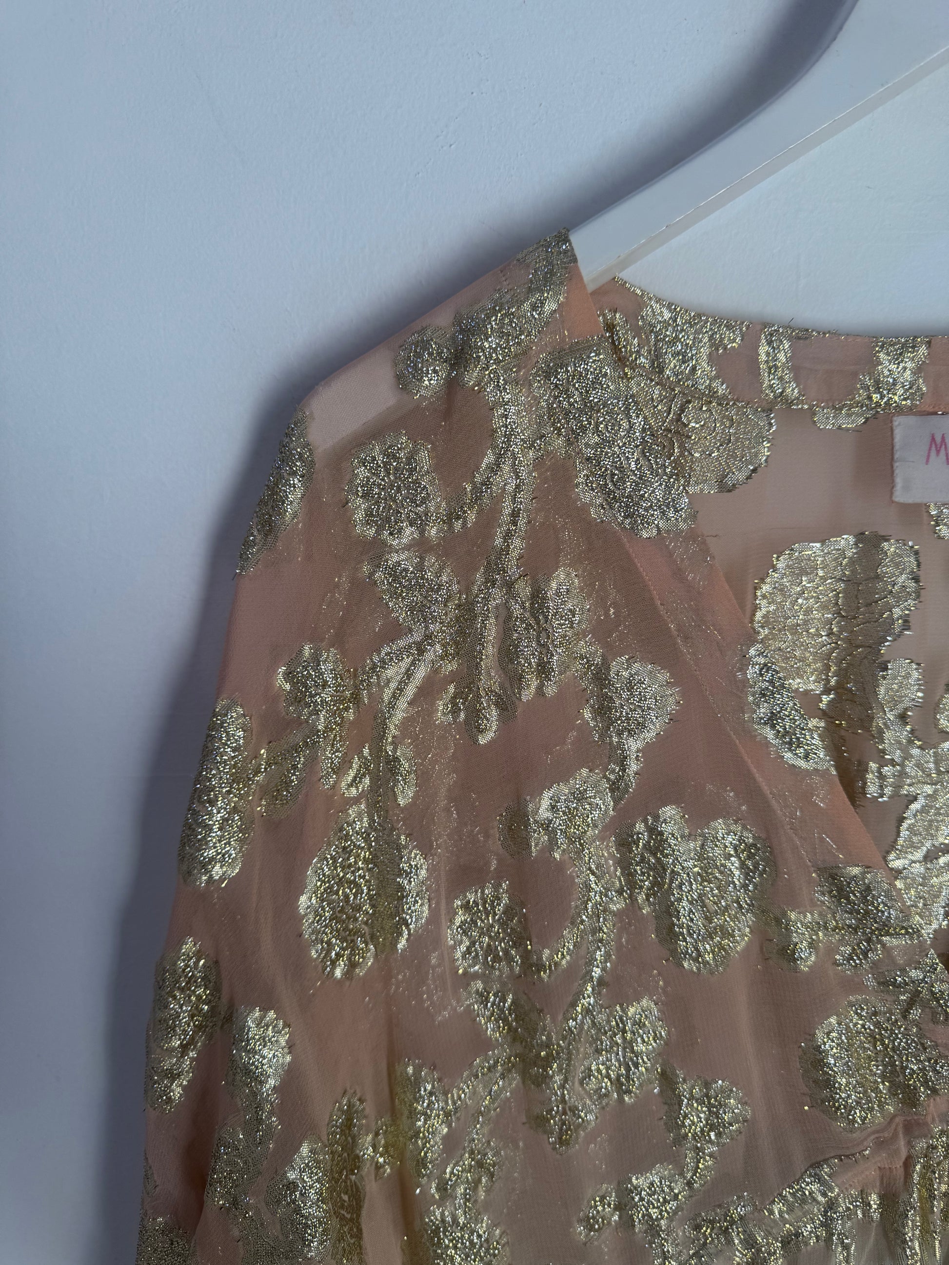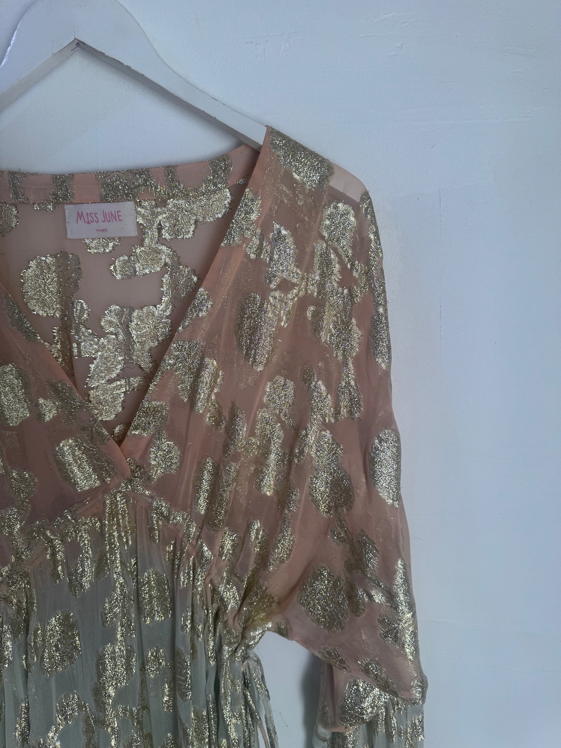 Miss June Floral Print Gold Kaftan Dress - Size S