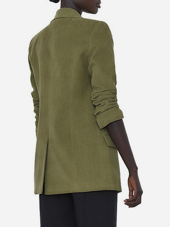 The Wingrave Blazer in a subtle green is the ultimate corduroy dream. Wrapped with an obi style belt this piece features welt pockets and a notched lapel collar to perfectly elevate your wardrobe.