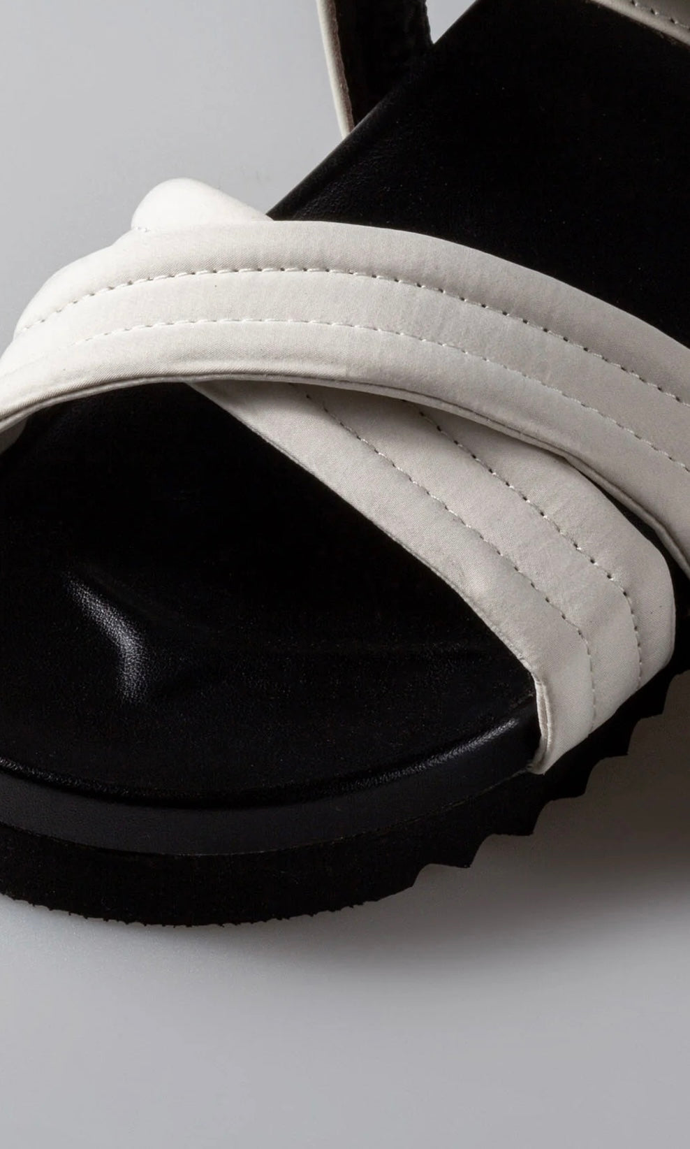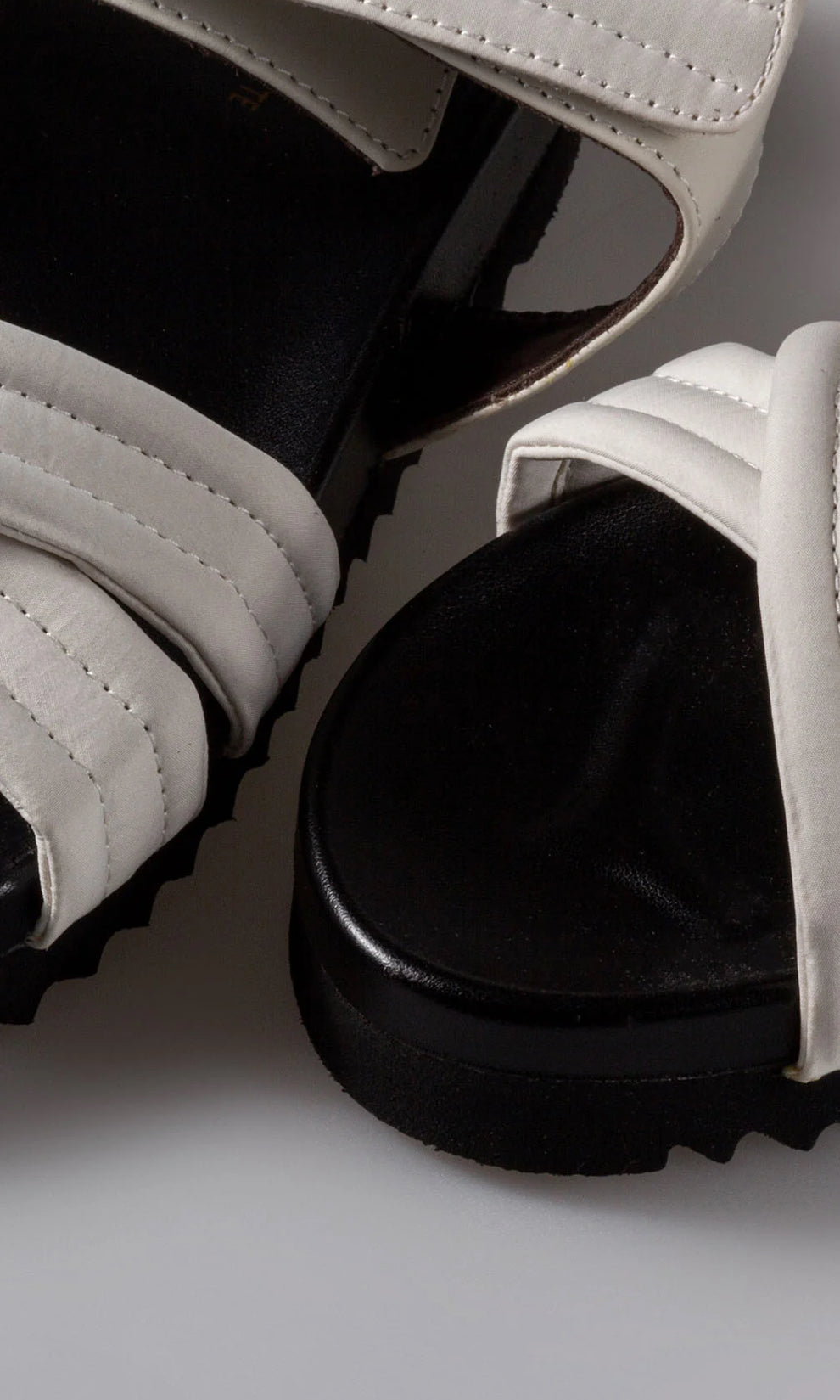 The Bronte Sandals perfectly combine comfort and style. Featuring a crossover design and velcro closure and a pull tab.