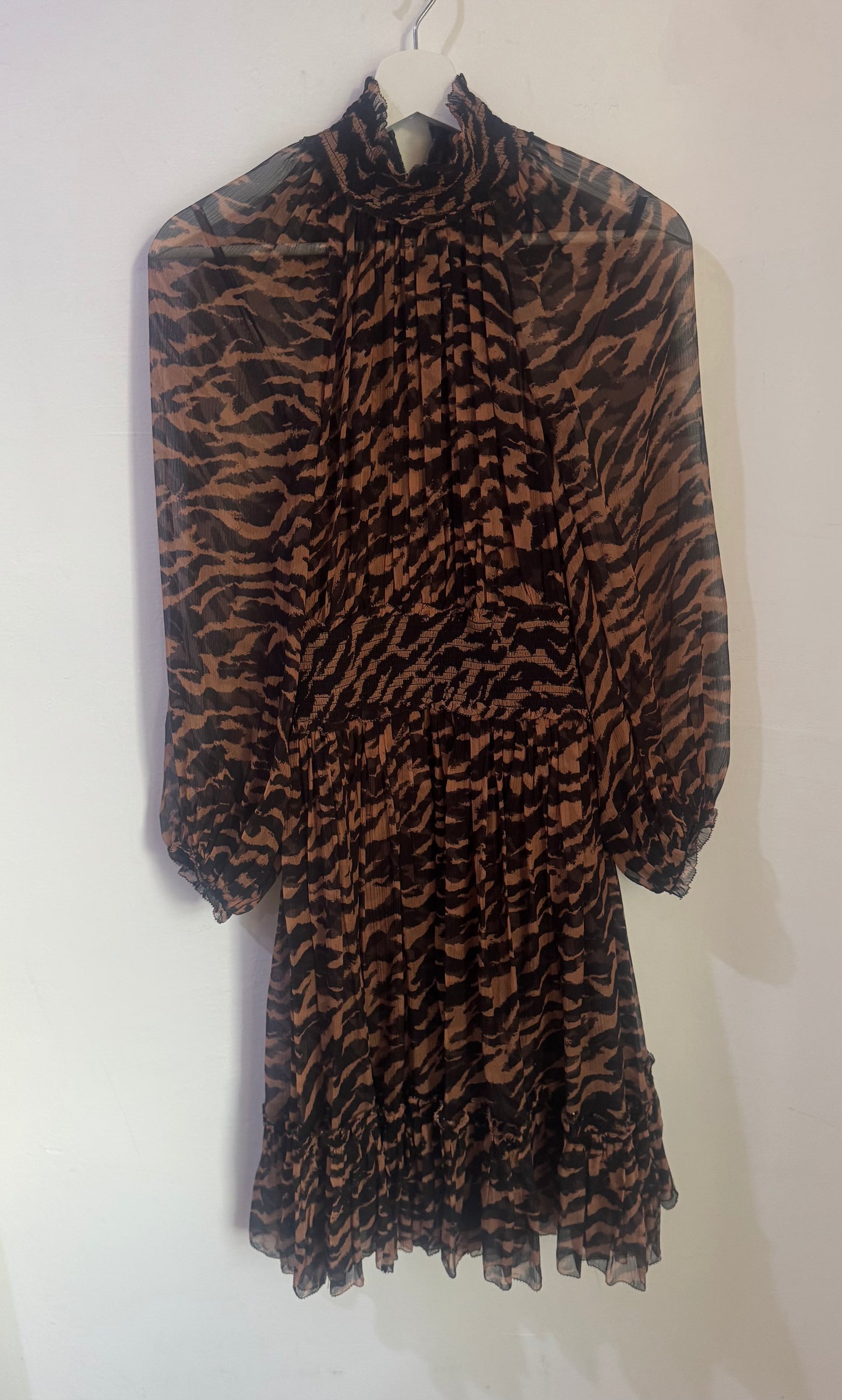 Zimmermann Wavelength Shirred Tiger-Print Silk Mini Dress - Size 1