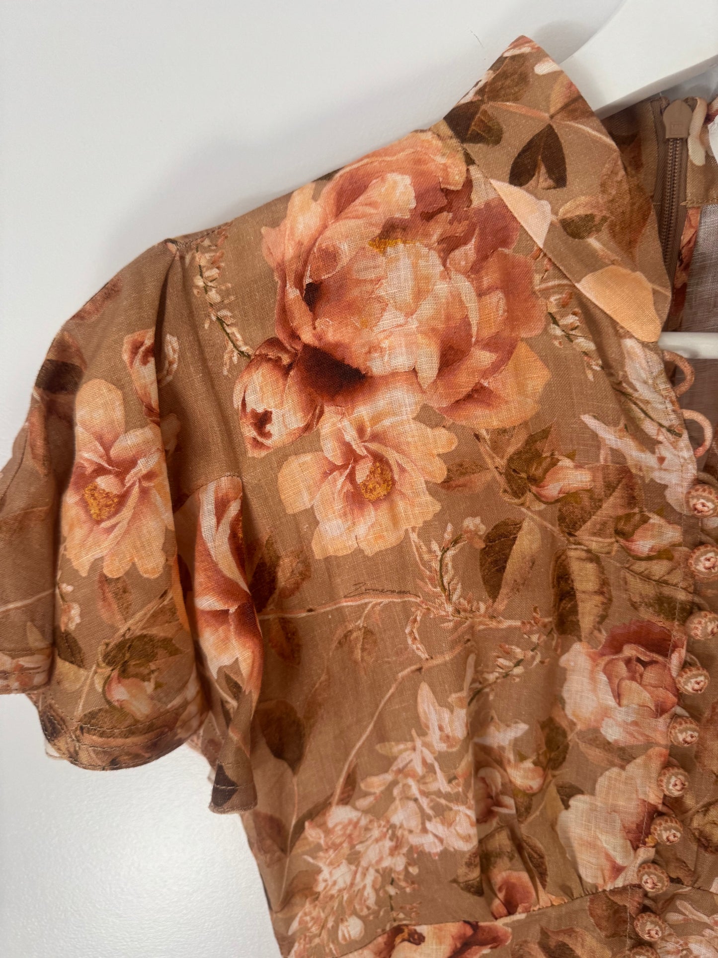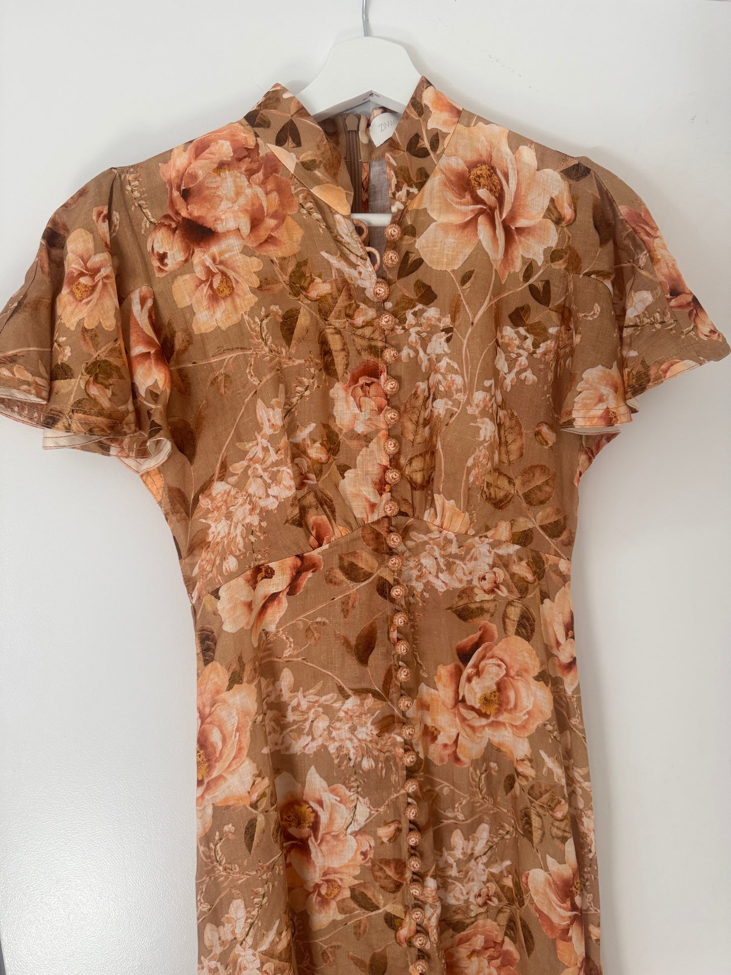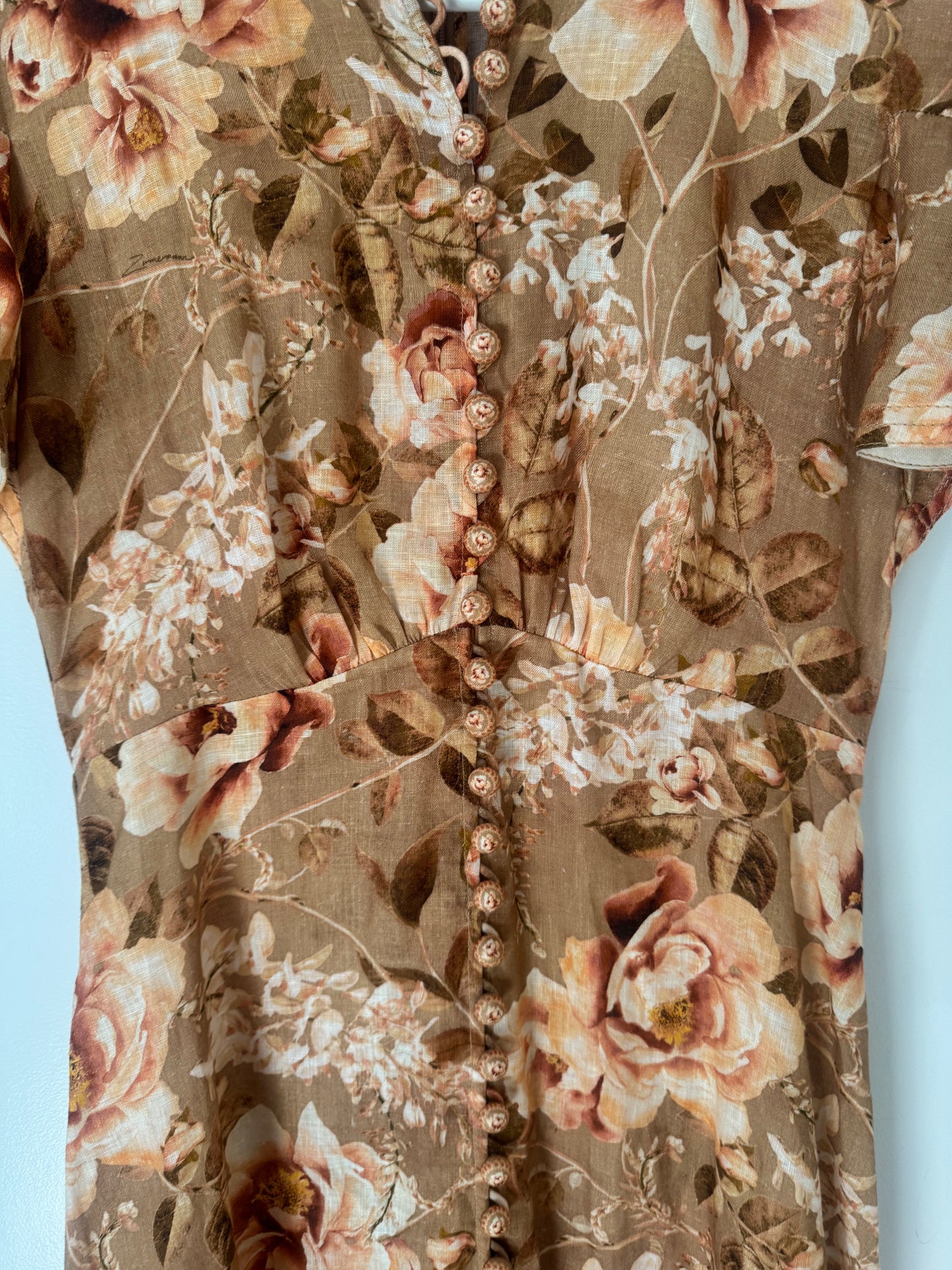 Zimmermann Floral Linen Midi Dress - Size OP (Petite Frame)