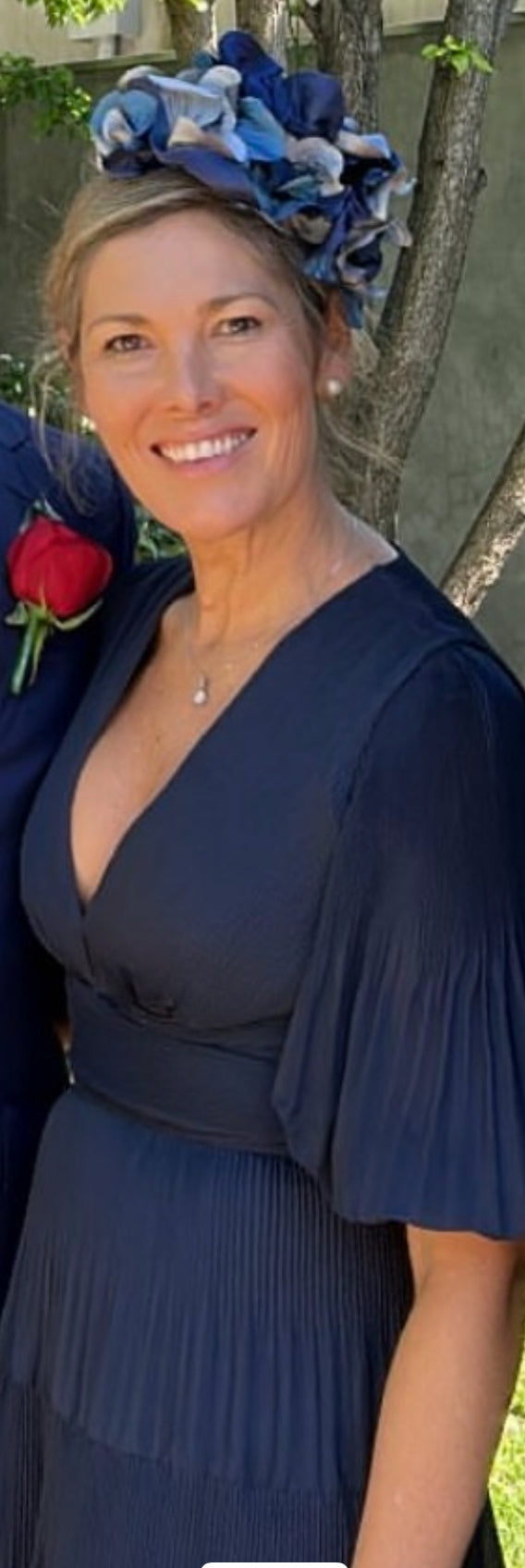 Navy Pleated Midi Dress